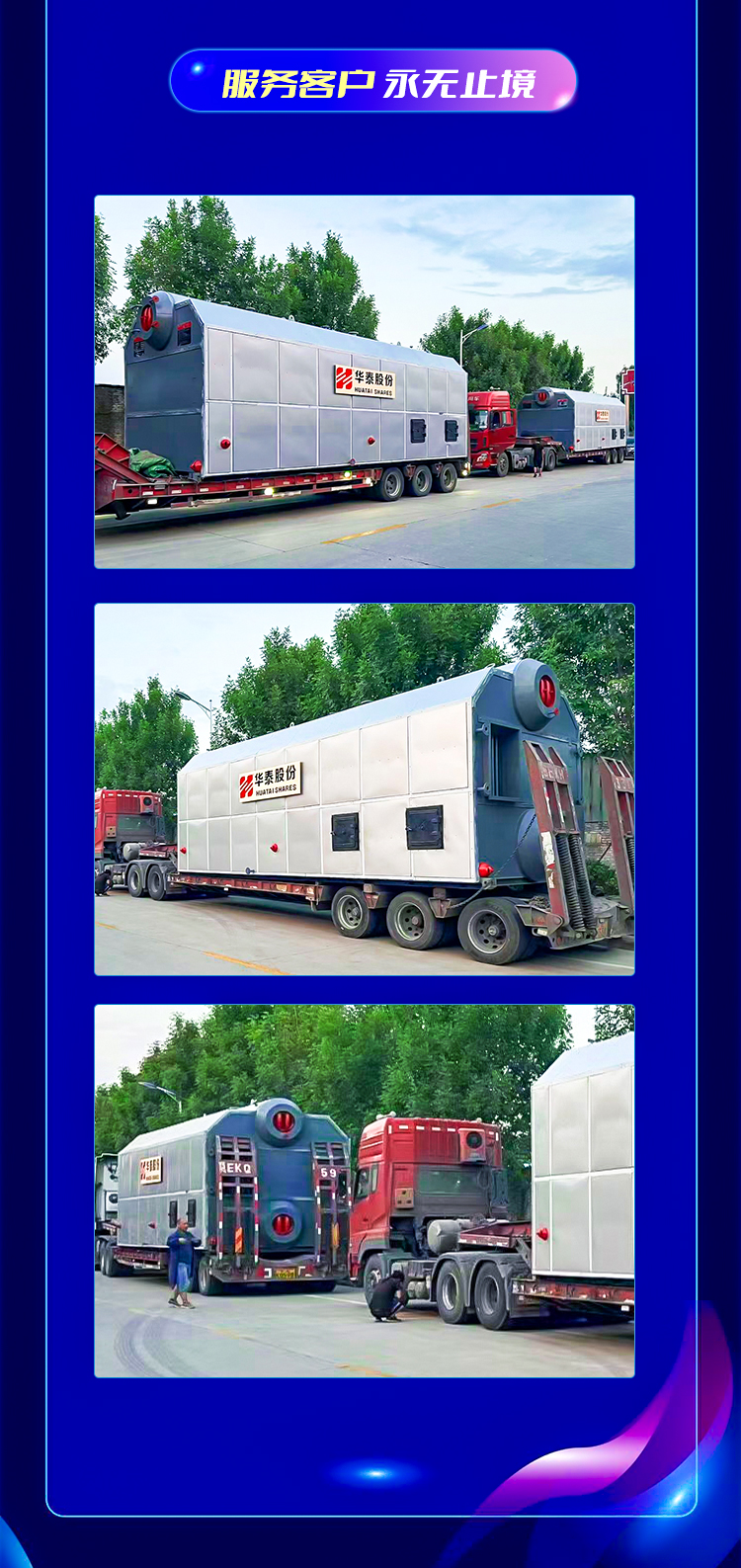 隨著汽車發動機的轟鳴(míng)聲,草莓污视频的雙胞胎兄弟8噸生物質鍋爐裝車工作(zuò)相繼完成,它將被運往生產一線為節(jiē)能環保之路貢獻自己的力量。